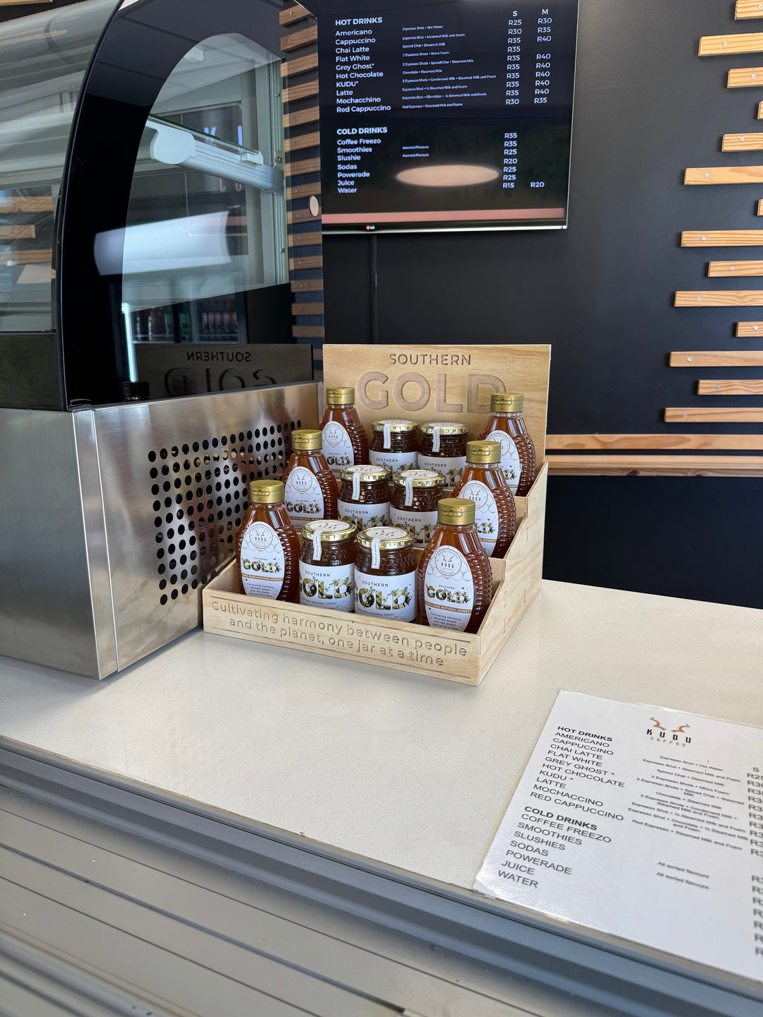 Kudu Coffee, a beloved coffee shop in Paarl, marks our very first co-branded collaboration — a partnership rooted in shared values of local support and community growth. Like us, they prioritise quality, sustainability, and the spirit of togetherness. Together, we’ve crafted a special jar of Southern Gold Honey to pair with their expertly brewed coffee, celebrating both our local roots and our commitment to fostering a stronger, more connected community.